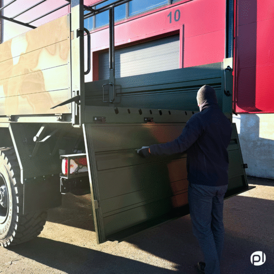 On the vehicle shown in the images, the rear gate serves as the main access point, and due to the vehicle’s height, two steps were installed. In typical applications, one step is usually sufficient.